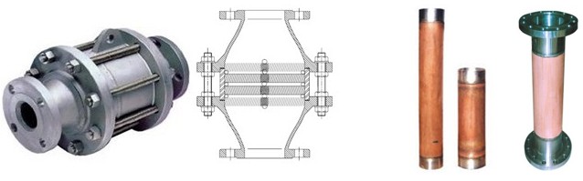 氧氣管道阻火器分為閥前和閥后兩種,是采用特種銅合金和不銹鋼焊接而成。可以有效地防止氧氣管道閥門在突然開啟時(shí)易形成的“絕熱壓縮”,局部溫度驟升,成為著火能源;可以防止在閥門前后壓差作用下,高速運(yùn)動(dòng)的物質(zhì)微粒(如鐵銹、粉塵、焊渣等)與閥后管道摩擦、撞擊產(chǎn)生火花而成為著火能源。阻火器的使用可以迅速阻斷火源,杜絕管道中燃爆事故的發(fā)生。